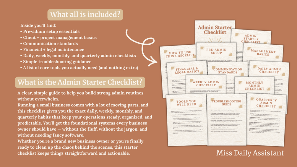 Whether you're a brand new business owner or you're finally ready to clean up the chaos behind the scenes, this starter checklist keeps things straightforward and actionable.
