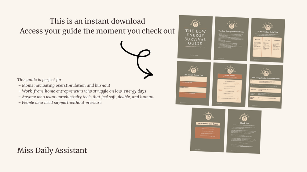 Life doesn’t stop when your energy does — but the pressure to “push through” usually makes everything feel worse. This guide gives you a softer, more realistic way forward. No shame. No hustle mindset. Just tiny, compassionate steps that help you feel grounded again.